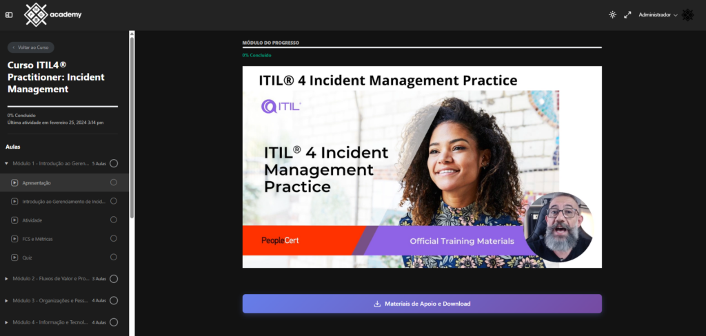 Curso completo, bem estruturado e altamente didático, ideal tanto para iniciantes quanto para profissionais que desejam certificação ITIL.