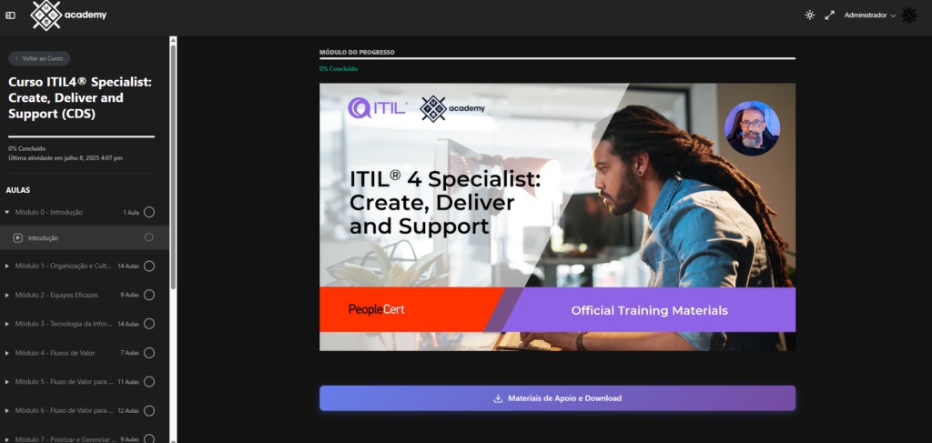 Curso completo, bem estruturado e altamente didático, ideal tanto para iniciantes quanto para profissionais que desejam certificação ITIL.