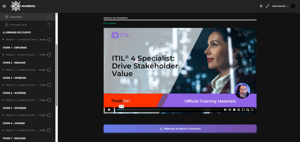 Curso completo, bem estruturado e altamente didático, ideal tanto para iniciantes quanto para profissionais que desejam certificação ITIL.